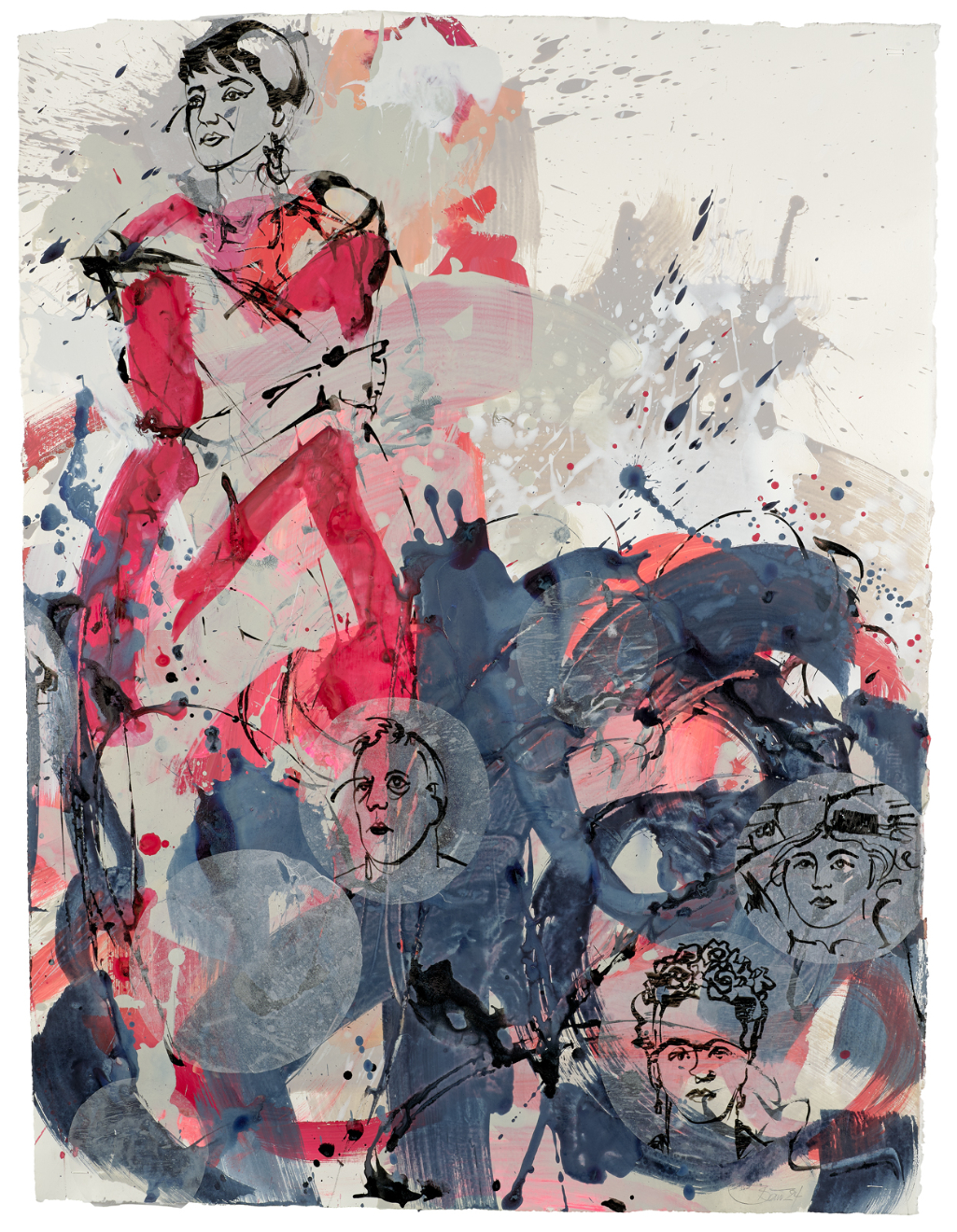 Die zweiteilige Arbeit zeigt Maria Callas als Sängerin der Costa Diva Arie von Bellini, 1958 in Paris. Um sie herum halbtransparente Dots mit zeichnerischen Darstellungen ihres alten Egos, aber auch von Janis Joplin, David Bowie, Martin Kippenberger, Andy Warhol, Romy Schneider, Frida Kahlo und Madonna. Dots ohne Zeichnung stehen für stellvertretend für die nicht Erwähnten. So feiert die Arbeit die große Diva Maria Callas als Vorreiterin und Vorbild, aber auch als Seelenverwandte von Persönlichkeiten und Lebenswegen, ohne die unsere zeitgenössische Kulturgeschichte so viel weniger bunt, leuchtend, funkelnd und vielfältig wäre. Der Titel der Arbeit bezieht sich auf die Arie von Bellini und ist mit „Eine Heimat und einen Himmel haben“ eine nur leicht veränderte Textstelle.